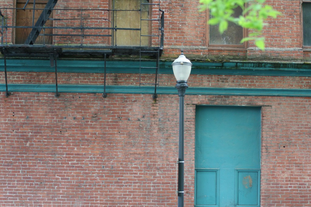 Photo safari day photo of a brick building and teal door. The simplicity, textures and colors make me feel calm.