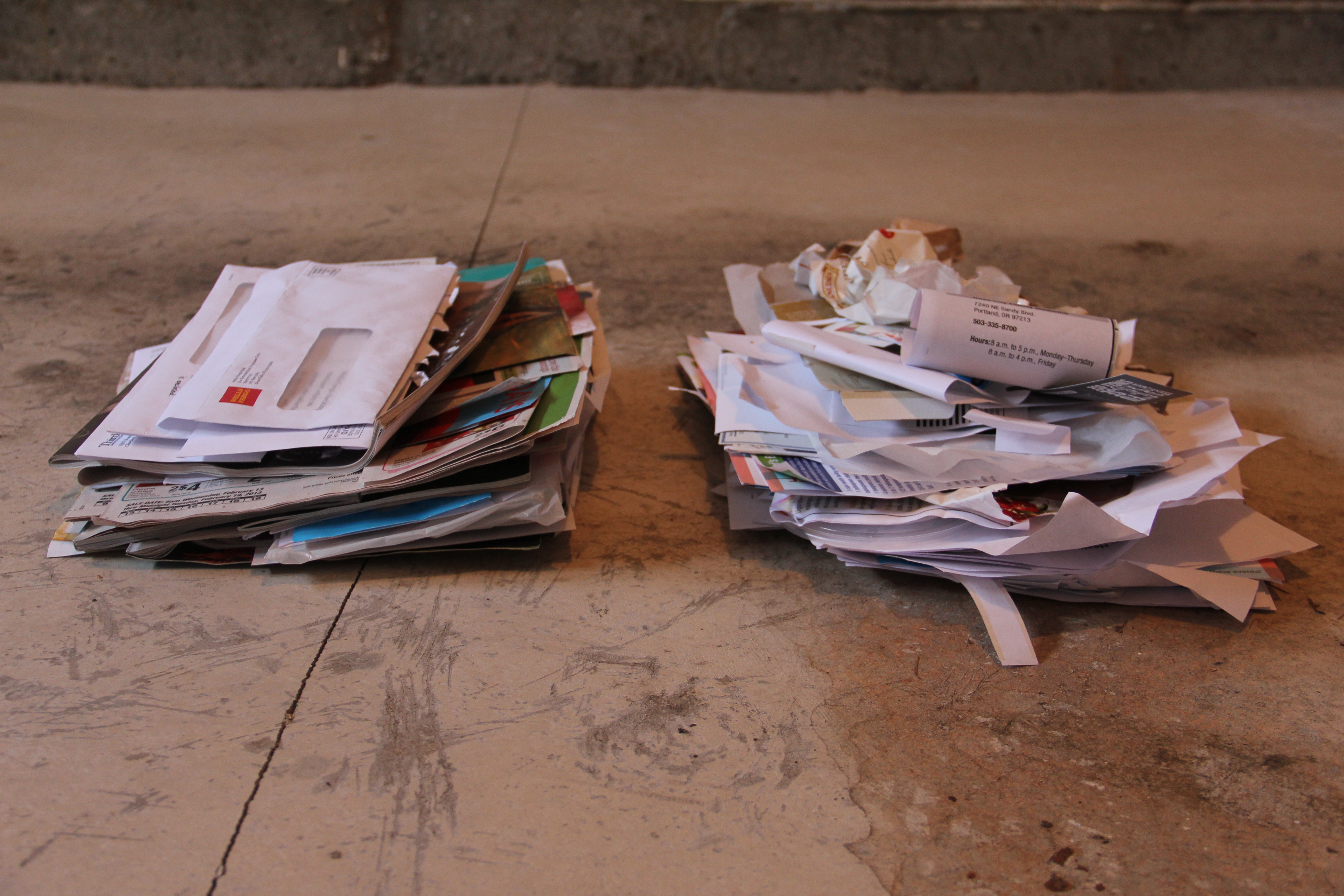 Left is junk mail and right is household papers.  I am consciously working to reduce the junk mail as I mentioned above via Catalog Choice and PaperKarma.