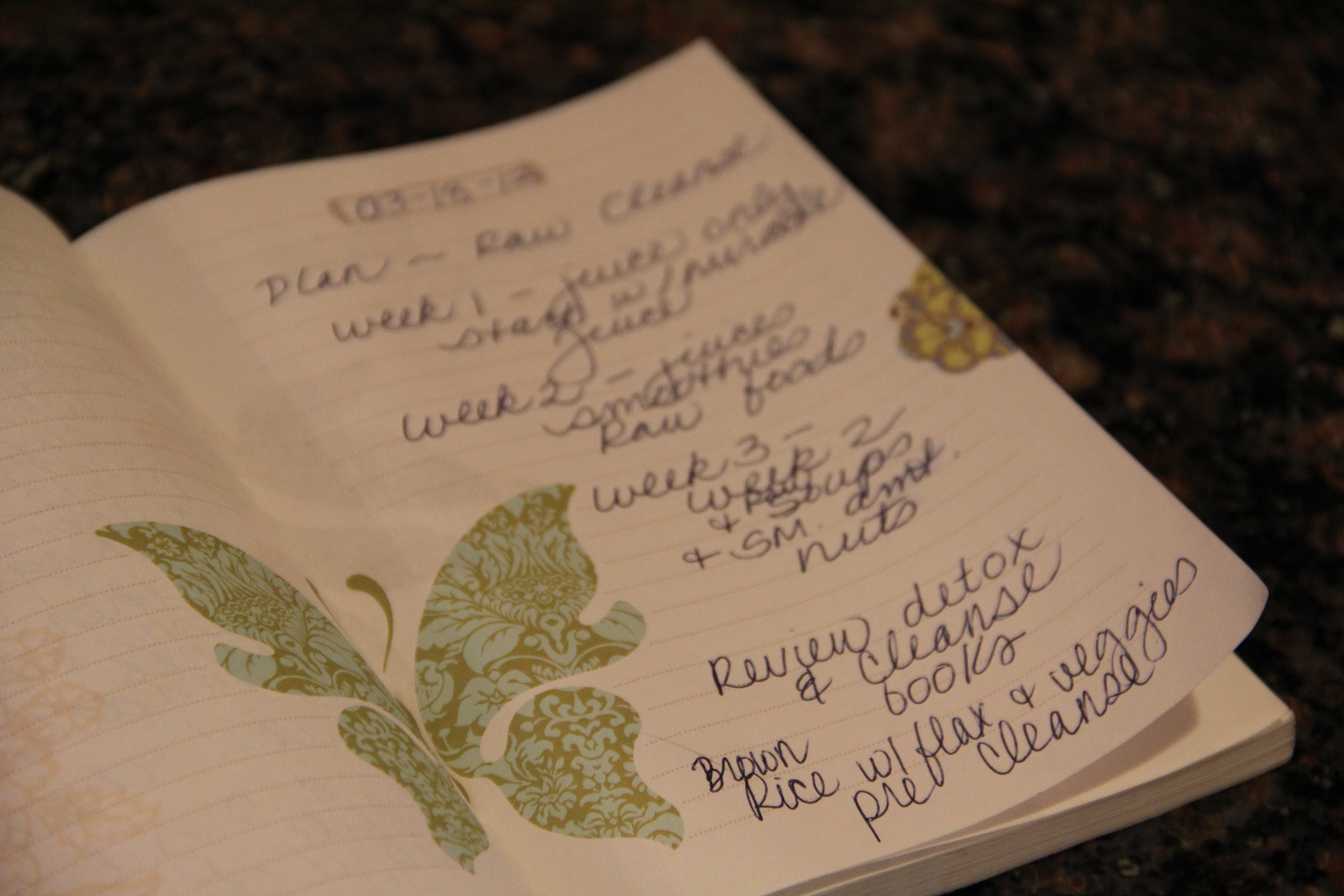 - Start a journal to record your progress, challenges, feelings, dreams and thoughts while on the cleanse. Doesn’t have to be fancy, scrap paper will do.