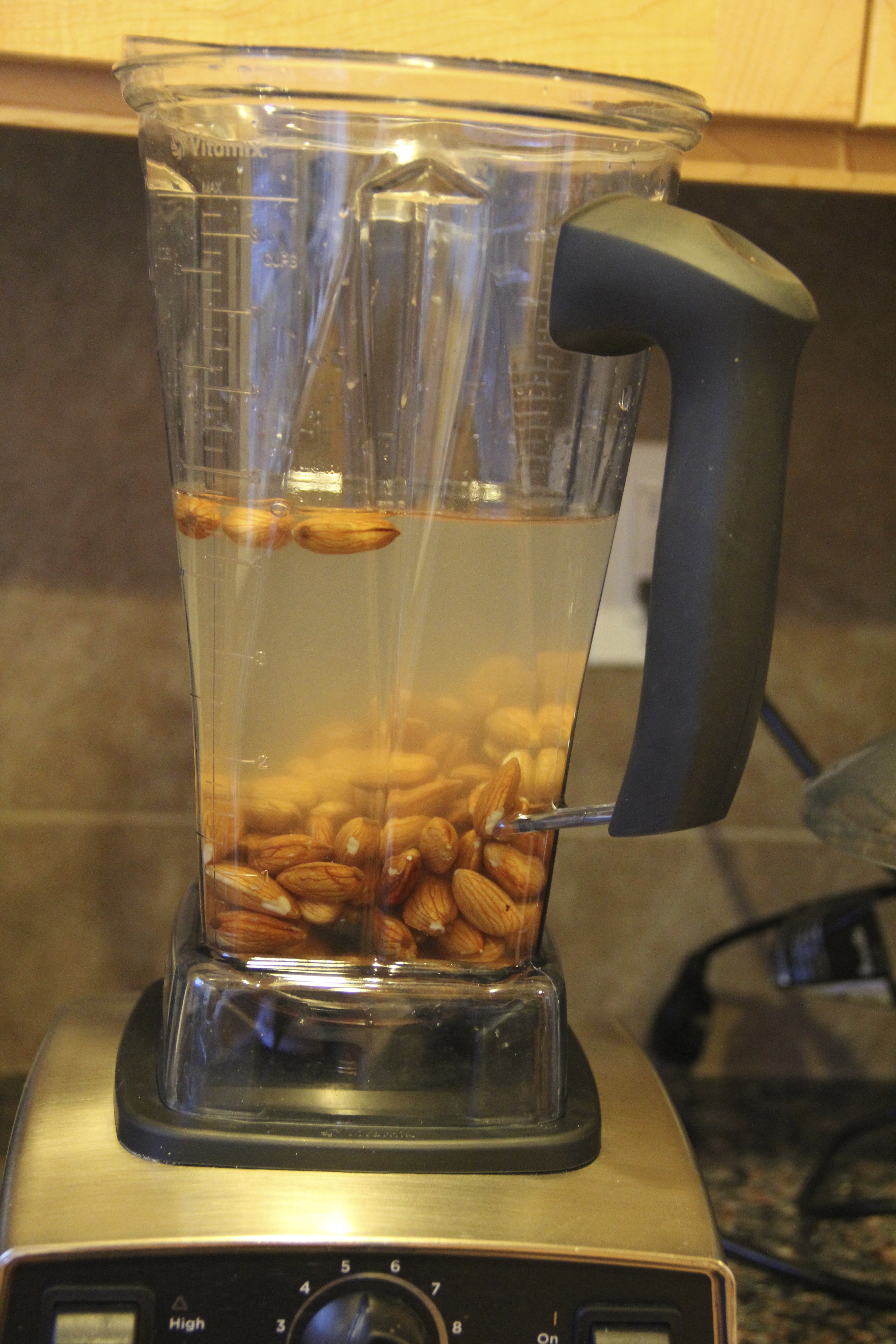 Blend all ingredients on high for a full minute and enjoy. You don’t need to strain the milk, as there is not enough sediment to bother.