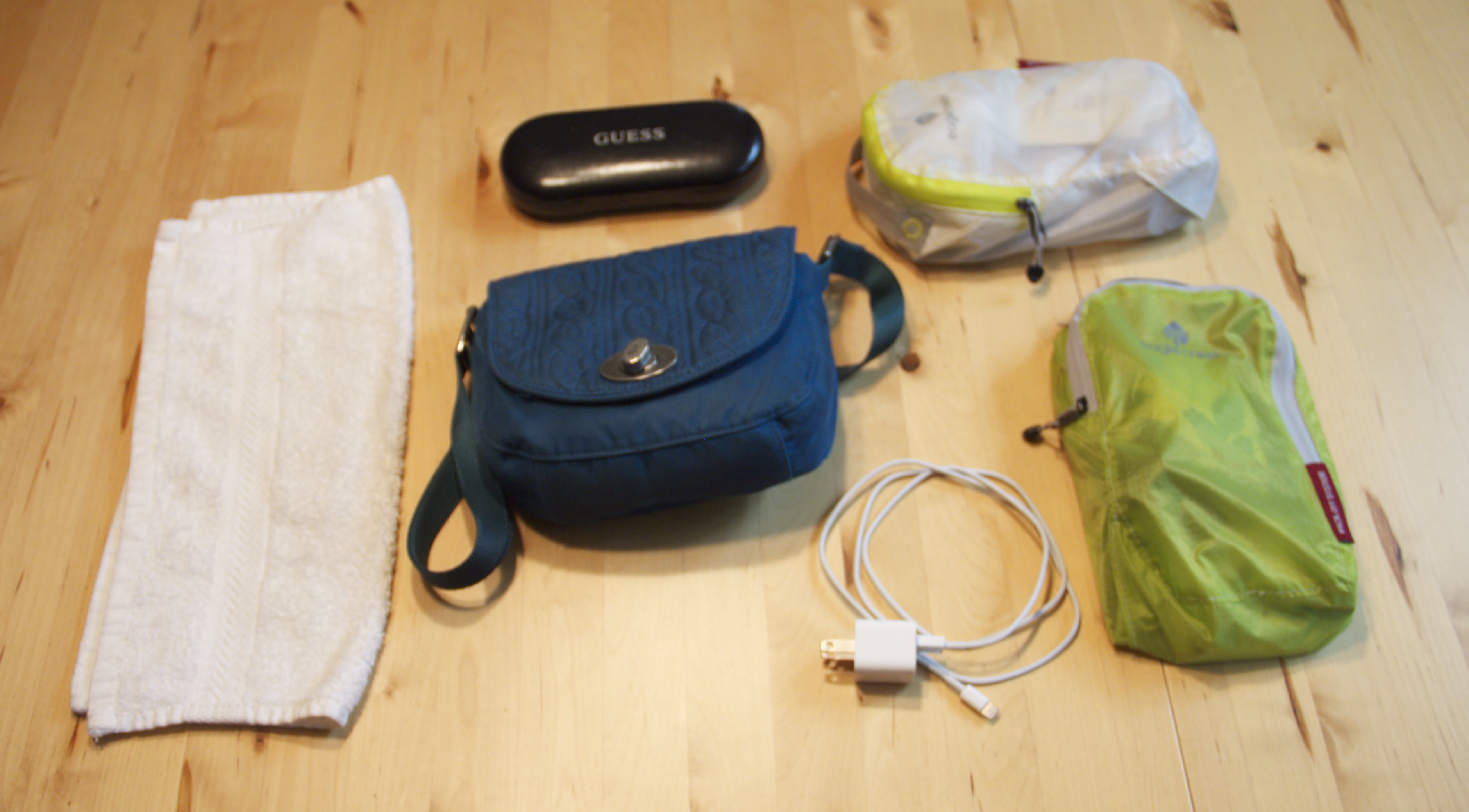 Personal care items fit into these smaller white & green Eagle Creek bags. I also took a clean white washcloth, my purse, eyeglass case and phone charger.
