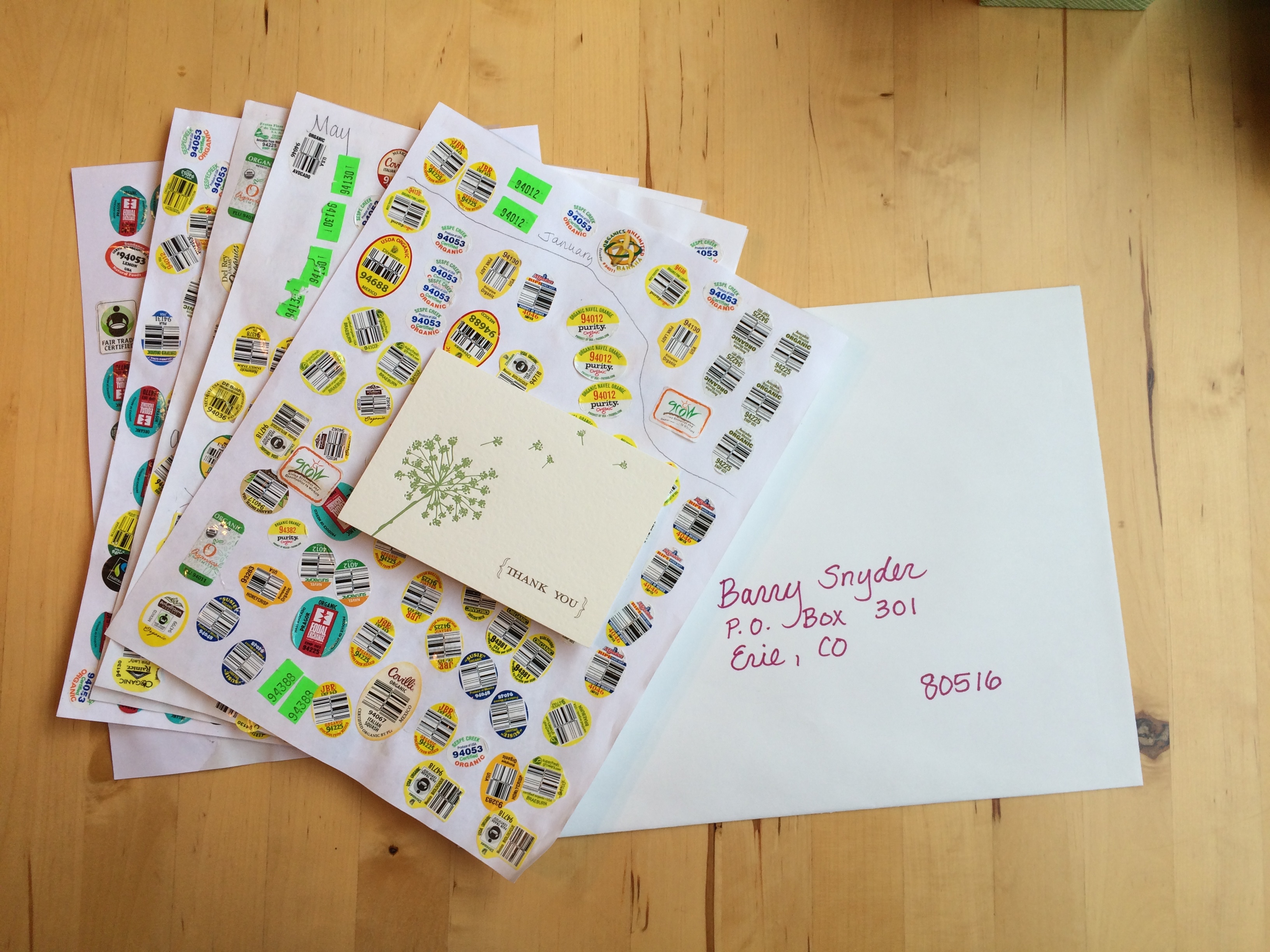 Here are my stickers from 2014 that I collected and sent on to Barry. While it’s not much, I’m glad it is being put to good use. Eco-Vegan Gal mentioned there are some new stickers coming out that are compostable, but I have yet to see them.