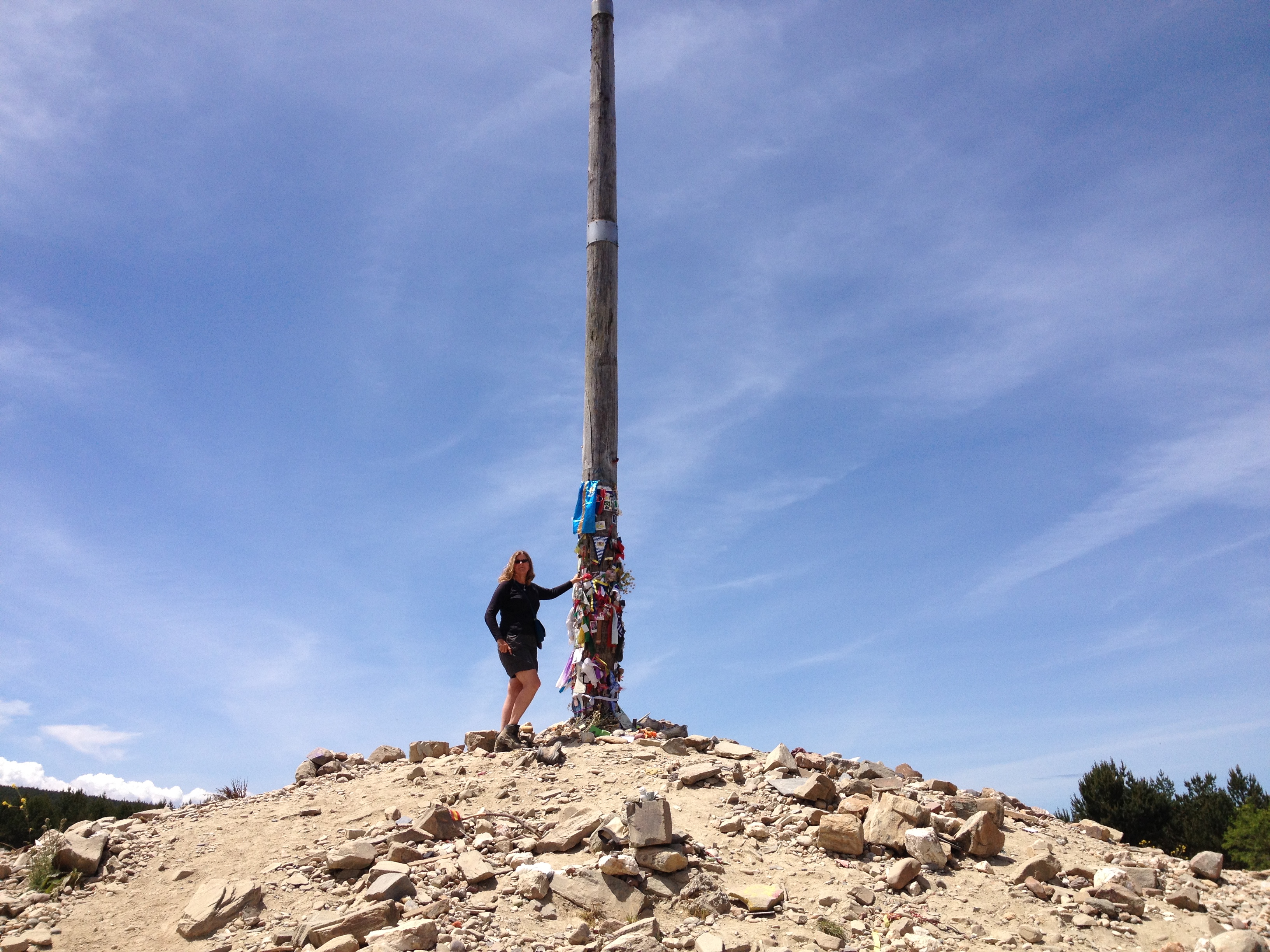 Next came an important stop at Cruz de Ferro. This is the place where pilgrims for years have been leaving stones or items to represent what they are releasing. People leave pictures of loved ones, rosaries, trinkets and stones. I had prepared my stone by selecting it prior to leaving Portland. It was one I had colored to represent spirituality for me. I also had invited friends at my going away party to share anything they too wanted me to leave for them at this special location…so Lori, Jen and Barbara’s own prayers and wishes for release where also placed there.