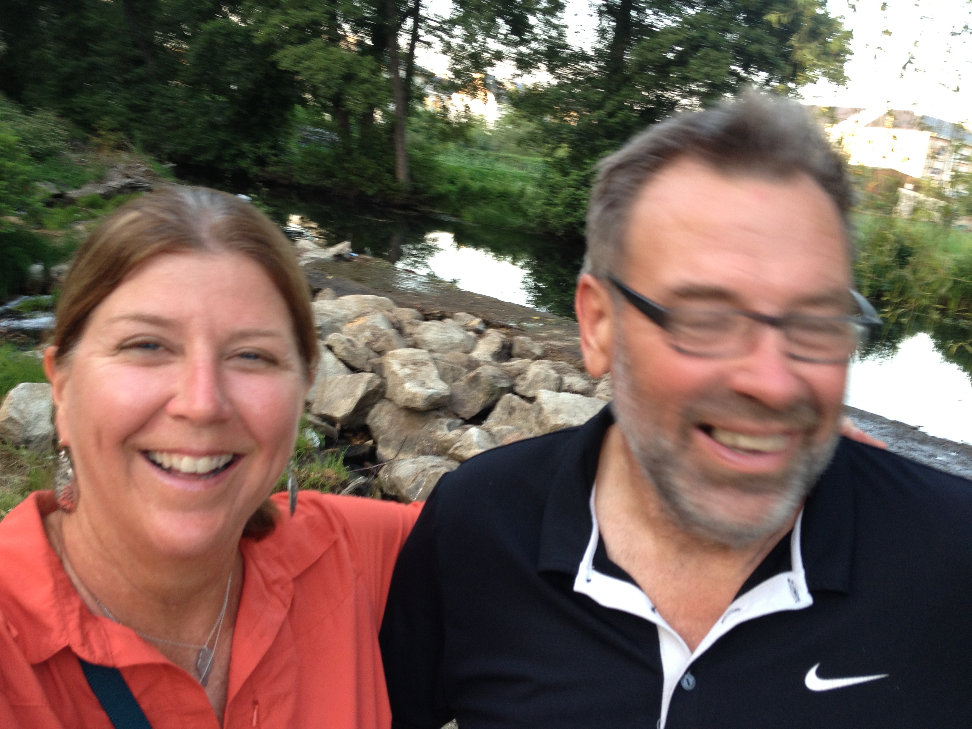 In Sarria after a nice dinner while watching locals swim in the river. I know it’s blurry, but I like that we are both laughing.