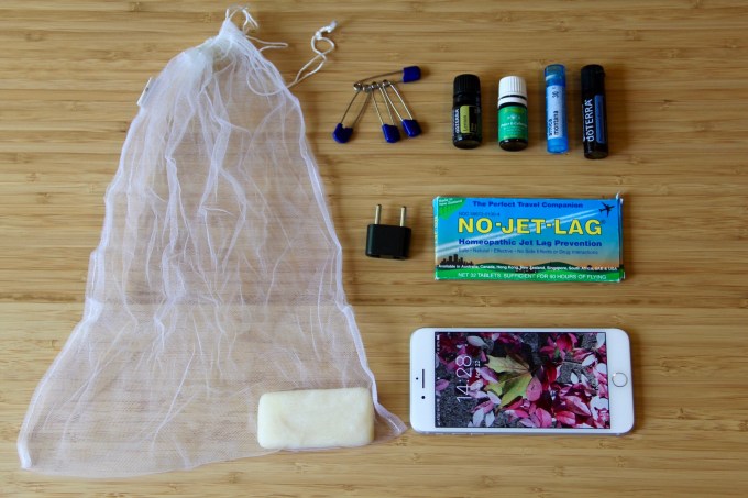 Dr. Bronner’s soap in a net bag. I tried many shampoo bars prior to this trip. Lush is way too artificially scented for my nose! JR Liggets didn’t seem to cut oil well enough. Dr. Bronner’s was mild, but worked well for cleaning my body, hair and clothes. It’s always nice to find a multi-function item when you’re traveling light. I did end up buying shampoo however, as my wavy hair just frizzed out. One tip I have is to put the soap into a net bag so you can hang it to easily dry overnight. I used one of my net bulk produce bags and it worked nicely.